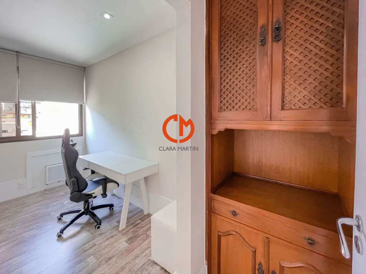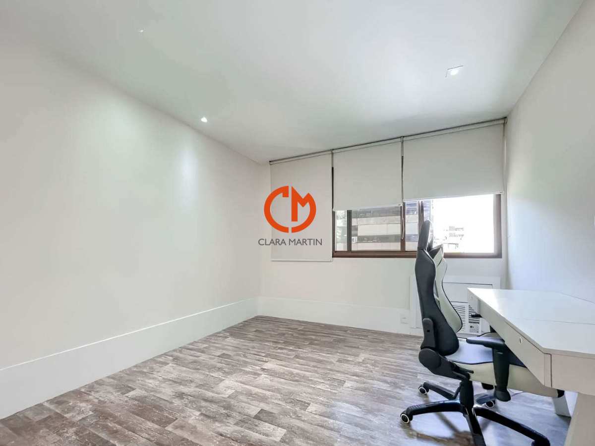 Apartamento com planta circular, reformado, claro e arejado, em área nobre do Leblon, sendo 1 unidade por andar com hall exclusivo, Composto de sala em dois ambientes com acesso a varanda, 3 quartos sendo um suite com closet, banheiro social, cozinha planejada repleta de armários e dependência completa. 1 vaga de garagem. Prédio alto padrão com portaria 24 horas.