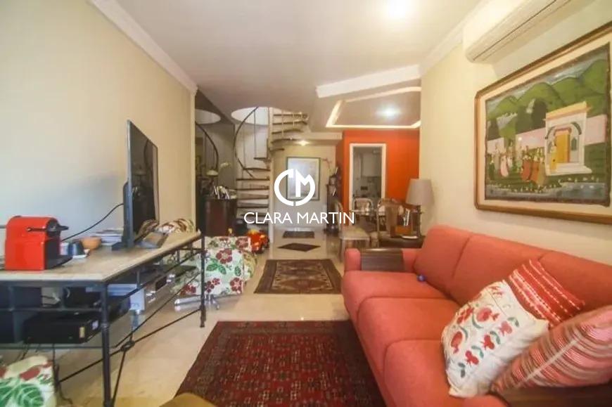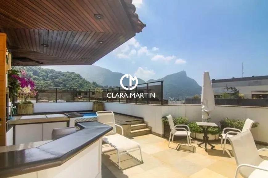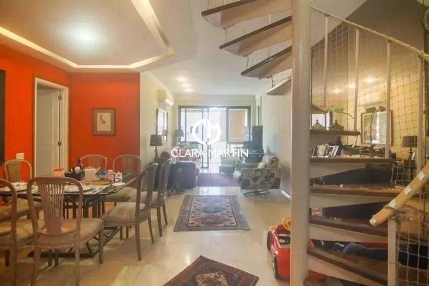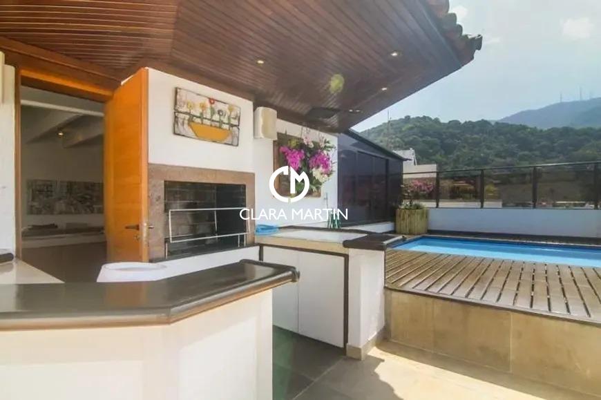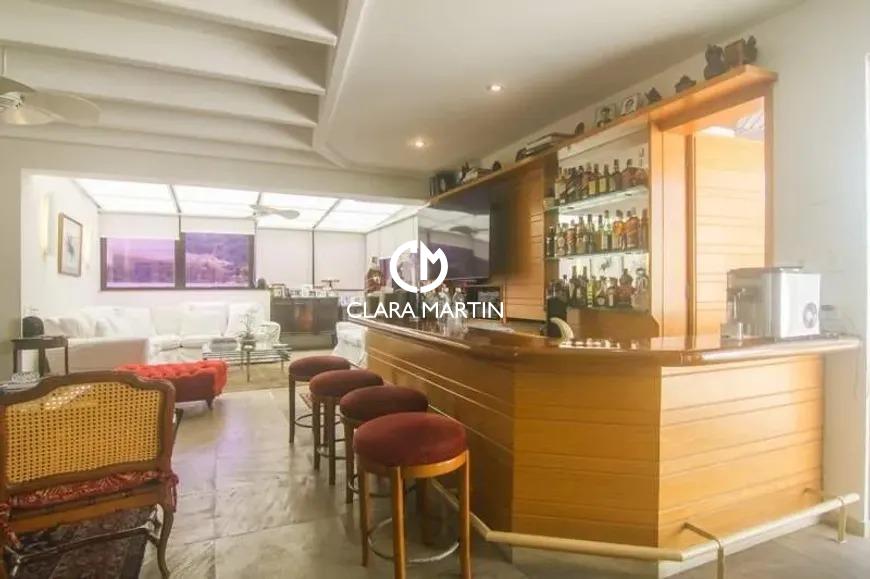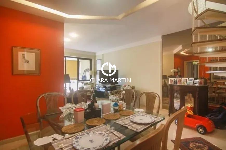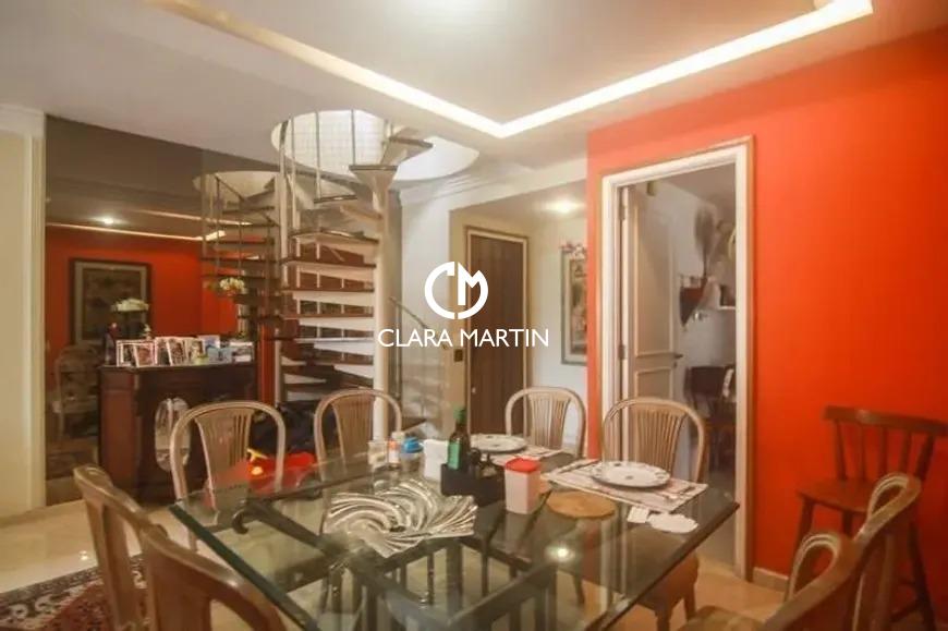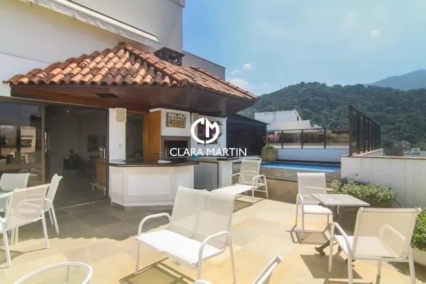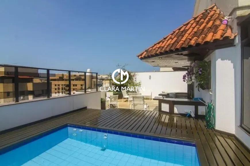 Cobertura exclusiva com 3 quartos (1 suíte com closet e hidromassagem) e 2 vagas de garagem. Ambientes amplos e reformados, incluindo salas de estar e jantar, cozinha planejada com copa e dependência completa.