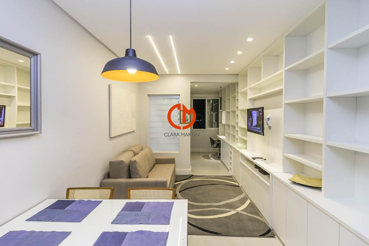 Apartamento totalmente reformado por arquiteto renomado. Composto por sala, 2 quartos, banheiro social, cozinha, área de serviço e dependência completa. Possui 1 vaga de garagem na escritura. Agende sua visita!