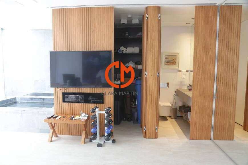 O imóvel dispõe de duas suítes, cozinha integrada aos ambientes sociais — sala de jantar e sala de estar — além de escritório e home theater harmoniosamente conectados. 2º piso com sala de ginástica e jacuzzi. 1 vaga de garagem.