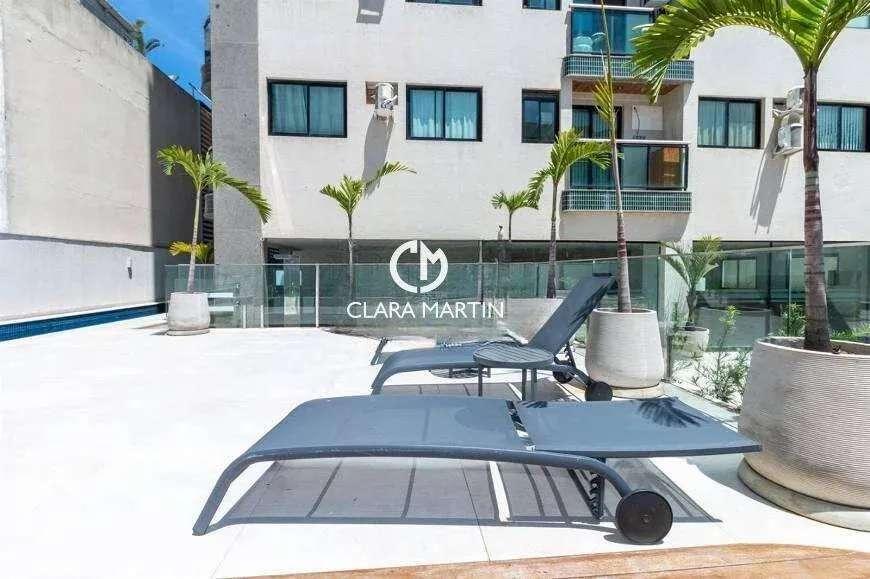 Apartamento de alto padrão com 2 suítes, 2 vagas de garagem, apenas 4 unidades por andar. Conta com acessibilidade para cadeirantes, banheiro social e suítes com box blindex. Possui cozinha planejada no estilo americano, lavabo, varanda/sacada com vista livre e ventilação natural. O prédio dispõe de elevador, está localizado na quadra da praia e aceita pets. Portaria com recepção 24 horas.